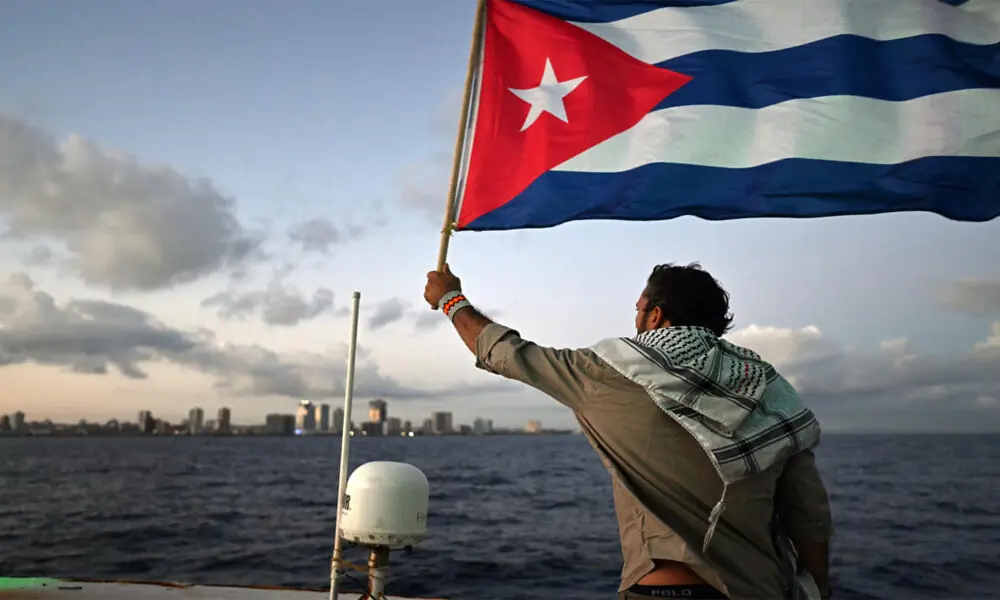 As they approached Havana’s colonial-era fortification, the international activists stood on the cabin roof of the boat — symbolically renamed “Granma 2.0” as a tribute to the yacht used by Fidel Castro’s guerrilla fighters to launch their revolution in 1956.