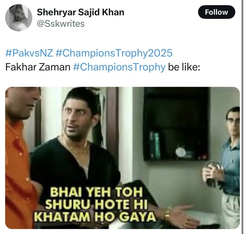 Meanwhile, as Pakistani fans face the possibility of an injured Fakhar Zaman, meme-ers are coping well with an arguably terrible situation.