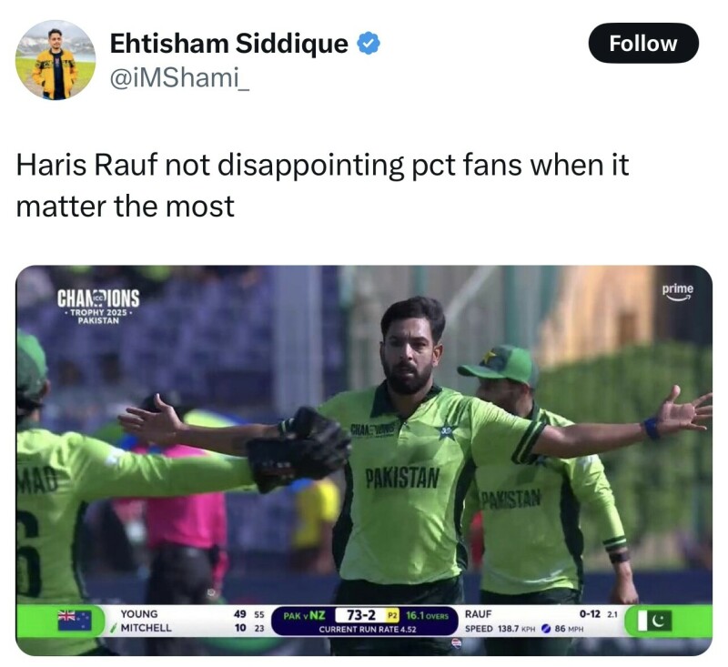 Meanwhile, here are some nice reactions to consume to celebrate Haris Rauf’s big wicket (swipe through to see them all).