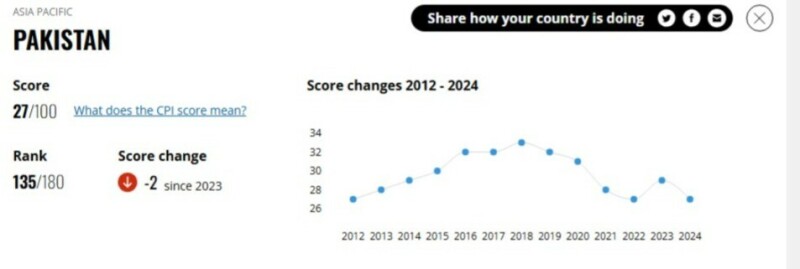Corruption Perception Index 2024: Pakistan’s rank slides 2 places