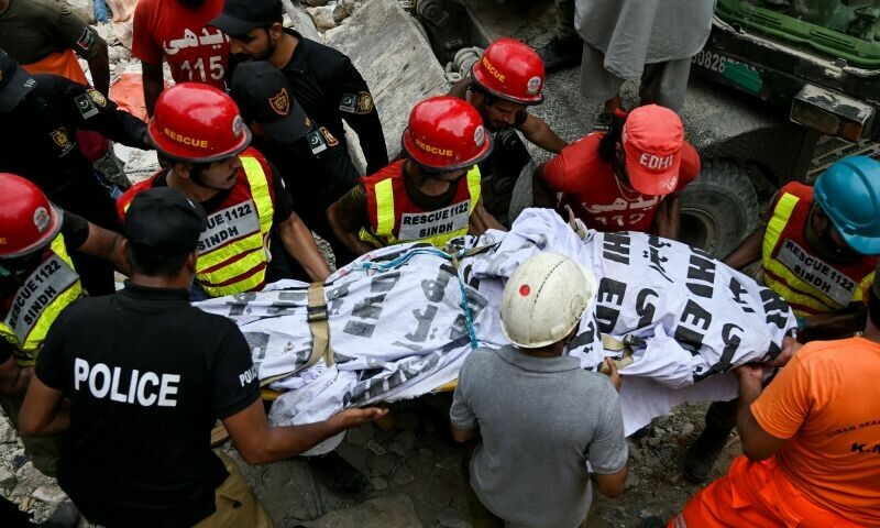 Rescue teams worked overnight on Friday to pull out more bodies from the rubble of the building situated in Lyari on Fida Husain Shaikha Road in Lea Market.