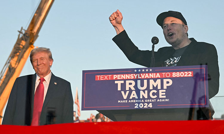 The CEO of SpaceX and Tesla who also purchased X, Musk joined Trump in Butler, Pennsylvania, on Saturday at the site where the former president survived an assassination attempt in July. Musk said “this will be the last election” if Trump doesn’t win. Wearing a cap with the “Make America Great Again” slogan of Trump’s campaign, Musk appeared to acknowledge the foreboding nature of his remarks. “As you can see I am not just MAGA – I am Dark MAGA,” he said.