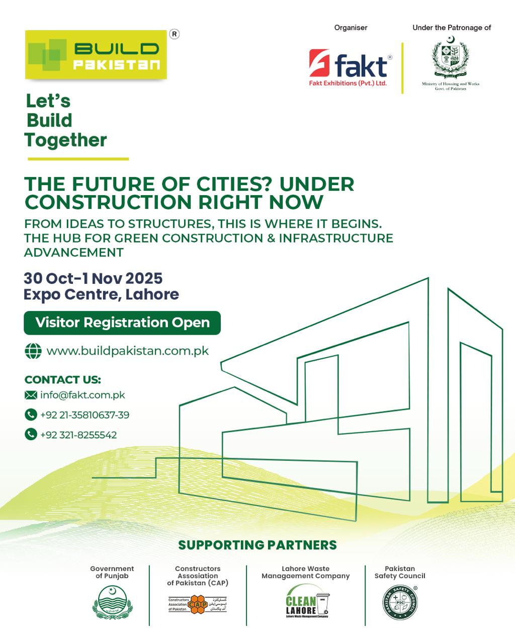Organized by Fakt Exhibitions (Pvt.) Ltd. in collaboration with the Ministry of Housing & Works, Government of Pakistan, the event unites builders, developers, investors, architects, engineers, and innovators under one roof to shape the future of country’s building and construction industry.