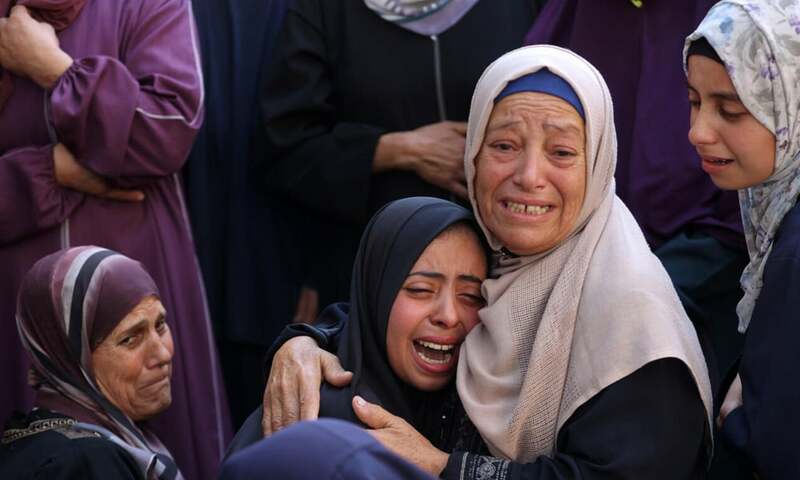AFP images showed mourners weeping over the bodies of seven people, including at least two children, wrapped in white shrouds and blankets at Al-Shifa hospital in Gaza City.