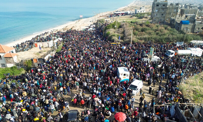 NUSEIRAT: Gaza’s civil defence agency said tens of thousands of displaced Palestinians were blocked from returning to the north of the territory on Sunday at an Israeli military barrier.