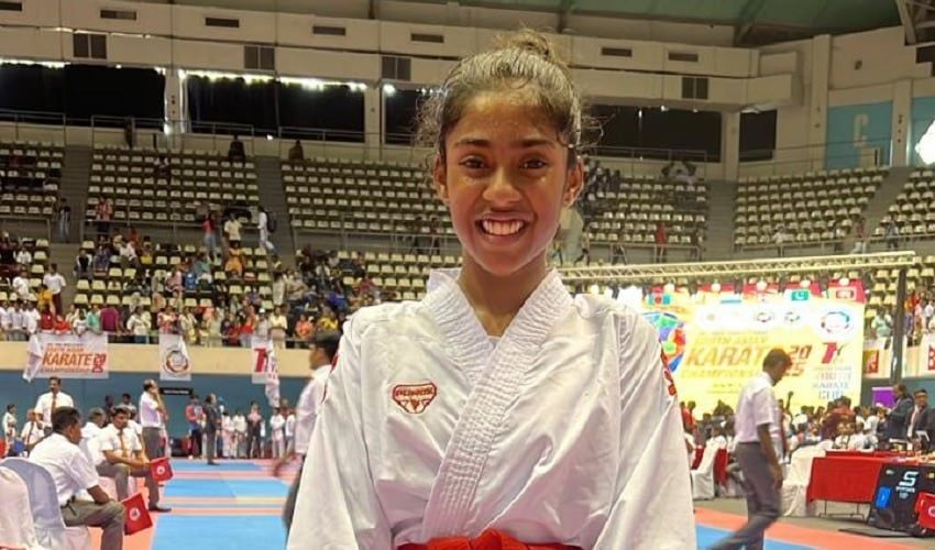 Young Pakistani athlete Aina Noel has brought pride to the nation by clinching a gold medal in the Under-12 +40kg Kumite event at the South Asian Karate Championship held in Colombo, Sri Lanka.