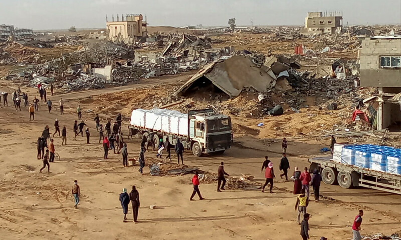 CAIRO/JERUSALEM: Israeli airstrikes killed at least six Palestinians guarding aid trucks against looters, Hamas officials said on Friday, underlining the problems hindering supplies from reaching hungry people in Gaza following Israel’s 11-week-long blockade.