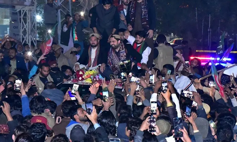 In a post earlier in the day, the PTI shared a video of PTI Hyderabad Youth Wing’s “enthusiastic” members chanting slogans as they stood prepared to welcome the KP CM at the Hyderabad Insaf House.