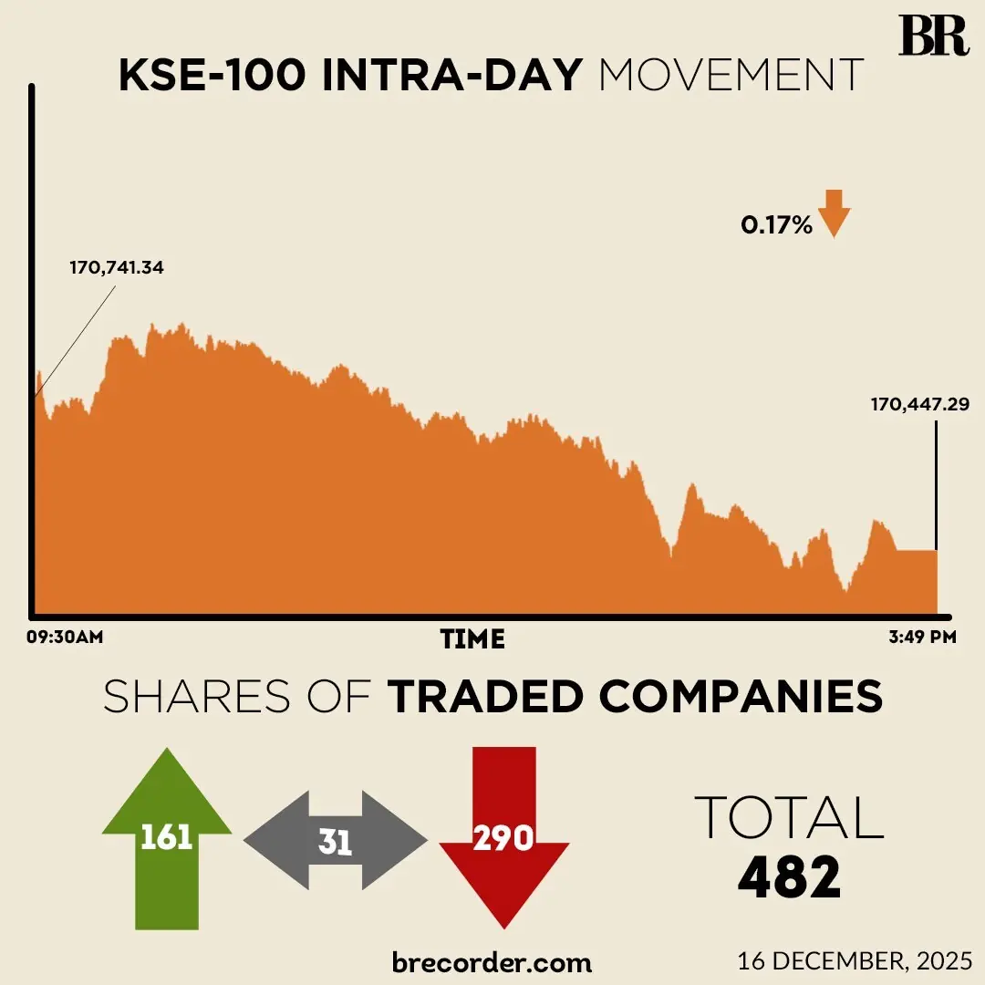 At close, the benchmark index settled at 170,447.29, a decrease of 294.05 points or 0.17%.