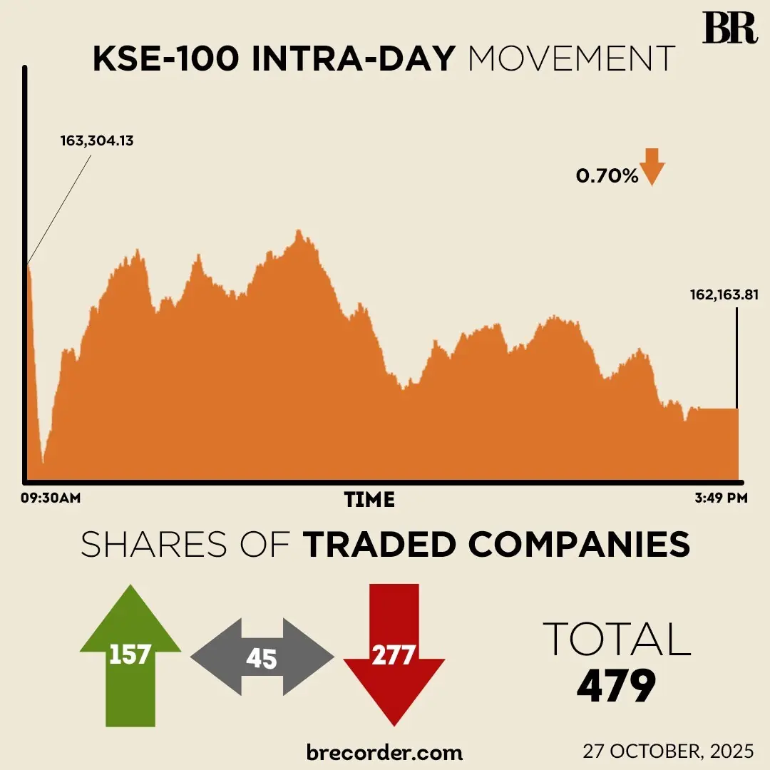 During the day, profit-taking was observed across key sectors, including energy and manufacturing, dragging the KSE-100 to an intra-day low of 161,766.61.