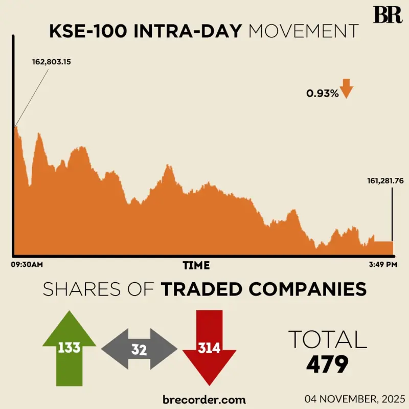 At close, the benchmark index settled at 161,281.77, a decrease of 1,521.39 points or 0.93%.