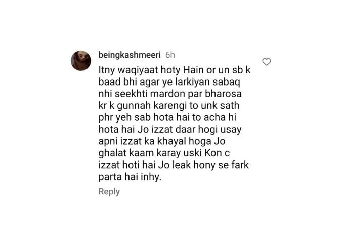 The actress also highlighted the disturbing recent cases, including the tragic example of a young woman from Gilgit-Baltistan and other victims who have faced online trolling after their private videos were circulating online.