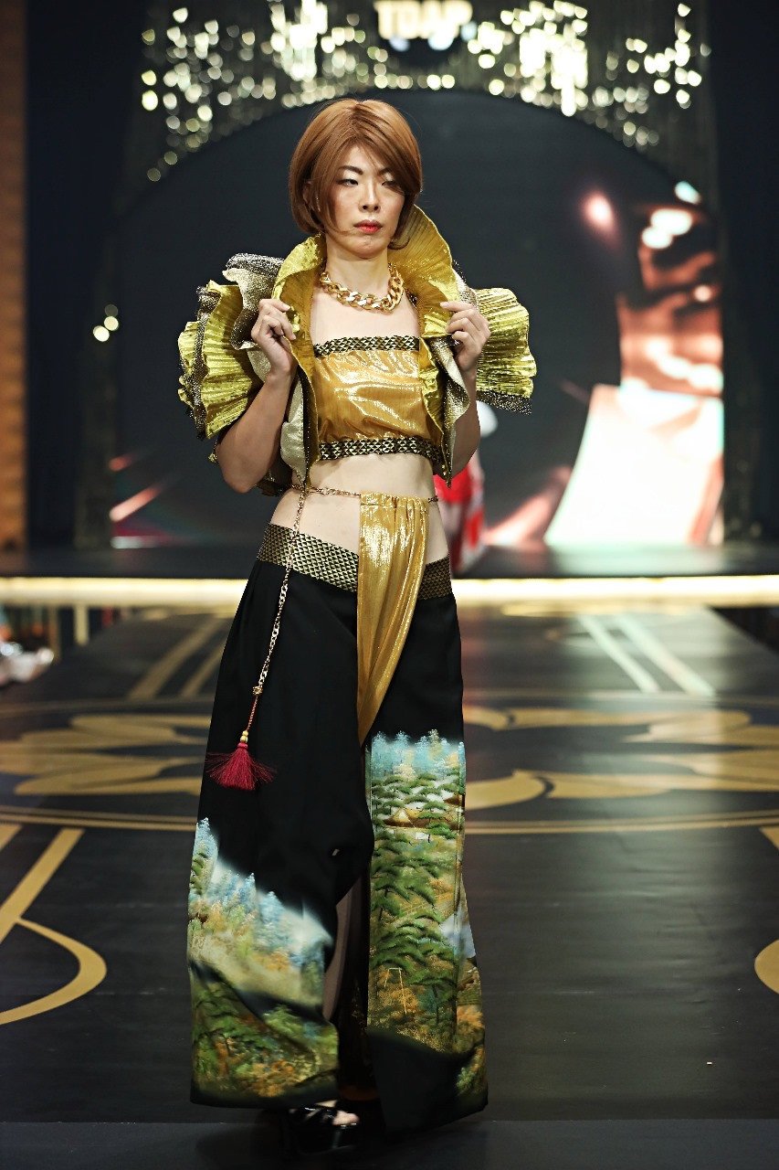Sanam Chaudhri’s NYX was ferocious and sensual with its risqué cuts and bead worked vanguard jackets. This Autumn/Winter collection, inspired by the women of the night, exuded power, though at times in a somewhat heavy-handed way. Cheetah print chokers and details felt slightly on the nose for a collection about fierceness. The use of rich silks and tassels followed this year’s international trends, but Chaudhri injected them with her own 1920s flapper-inspired energy, creating an edgier take on the Jazz Age revival. Her offerings included blacks, deep reds, and golds punctuated by sharp A-symmetrical cuts, with over emphasised shoulders, harem pants, and knot-detail halters taking centre stage. This collection wasn’t for the faint of heart – each look demanded your full attention.