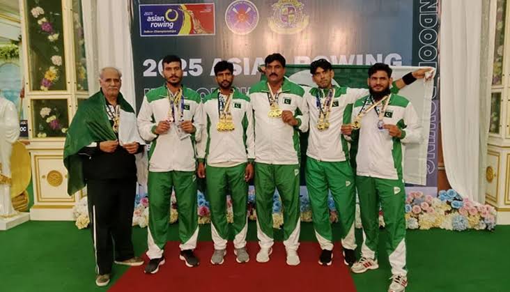 Pakistan’s rowing team made history at the Asian Indoor Rowing Championship 2025 held in Pattaya, Thailand, by winning a total of 14 medals. The team brought home 10 gold, 3 silver, and 1 bronze medal, securing third place overall in the championship.