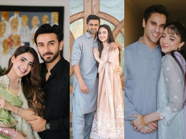 Pakistani celebritiy couples took to social media to share moments from their Eidul Azha celebrations, posting pictures with their families in traditional outfits.
