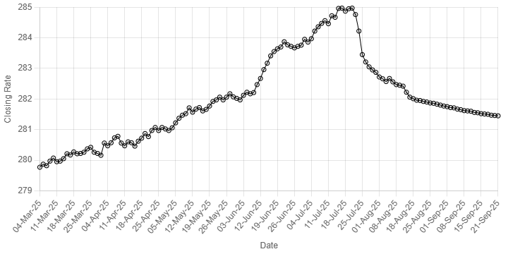 “25-Mar-25”, “26-Mar-25”, “27-Mar-25”, “28-Mar-25”, “03-Apr-25”, “04-Apr-25”, “07-Apr-25”, “08-Apr-25”, “09-Apr-25”, “10-Apr-25”, “11-Apr-25”, “14-Apr-25”, “15-Apr-25”, “16-Apr-25”, “17-Apr-25”, “18-Apr-25”, “21-Apr-25”, “22-Apr-25”, “23-Apr-25”, “24-Apr-25”, “25-Apr-25”, “28-Apr-25”, “29-Apr-25”, “30-Apr-25”, “02-May-25”, “05-May-25”, “06-May-25”, “07-May-25”, “08-May-25”, “09-May-25”, “12-May-25”, “13-May-25”, “14-May-25”, “15-May-25”, “16-May-25”, “19-May-25”, “20-May-25”, “21-May-25”, “22-May-25”, “23-May-25”, “26-May-25”, “27-May-25”, “29-May-25”, “30-May-25”, “02-Jun-25”, “03-Jun-25”, “04-Jun-25”, “05-Jun-25”, “10-Jun-25”, “11-Jun-25”, “12-Jun-25”, “13-Jun-25”, “16-Jun-25”, “17-Jun-25”, “18-Jun-25”, “19-Jun-25”, “20-Jun-25”, “23-Jun-25”, “24-Jun-25”, “25-Jun-25”, “26-Jun-25”, “27-Jun-25”, “30-Jun-25”, “02-Jul-25”, “03-Jul-25”, “04-Jul-25”, “07-Jul-25”, “08-Jul-25”, “09-Jul-25”, “10-Jul-25”, “11-Jul-25”, “14-Jul-25”, “15-Jul-25”, “16-Jul-25”, “17-Jul-25”, “18-Jul-25”, “21-Jul-25”, “22-Jul-25”, “23-Jul-25”, “24-Jul-25”, “25-Jul-25”, “28-Jul-25”, “29-Jul-25”, “30-Jul-25”, “31-Jul-25”, “01-Aug-25”, “04-Aug-25”, “05-Aug-25”, “06-Aug-25”, “07-Aug-25”, “08-Aug-25”, “11-Aug-25”, “12-Aug-25”, “13-Aug-25”, “15-Aug-25”, “18-Aug-25”, “19-Aug-25”, “20-Aug-25”, “21-Aug-25”, “22-Aug-25”, “25-Aug-25”, “26-Aug-25”, “27-Aug-25”, “28-Aug-25”, “29-Aug-25”, “01-Sep-25”, “02-Sep-25”, “03-Sep-25”, “04-Sep-25”, “05-Sep-25”, “08-Sep-25”, “09-Sep-25”, “10-Sep-25”, “11-Sep-25”, “12-Sep-25”, “15-Sep-25”, “16-Sep-25”, “17-Sep-25”, “18-Sep-25”, “19-Sep-25”, “21-Sep-25”