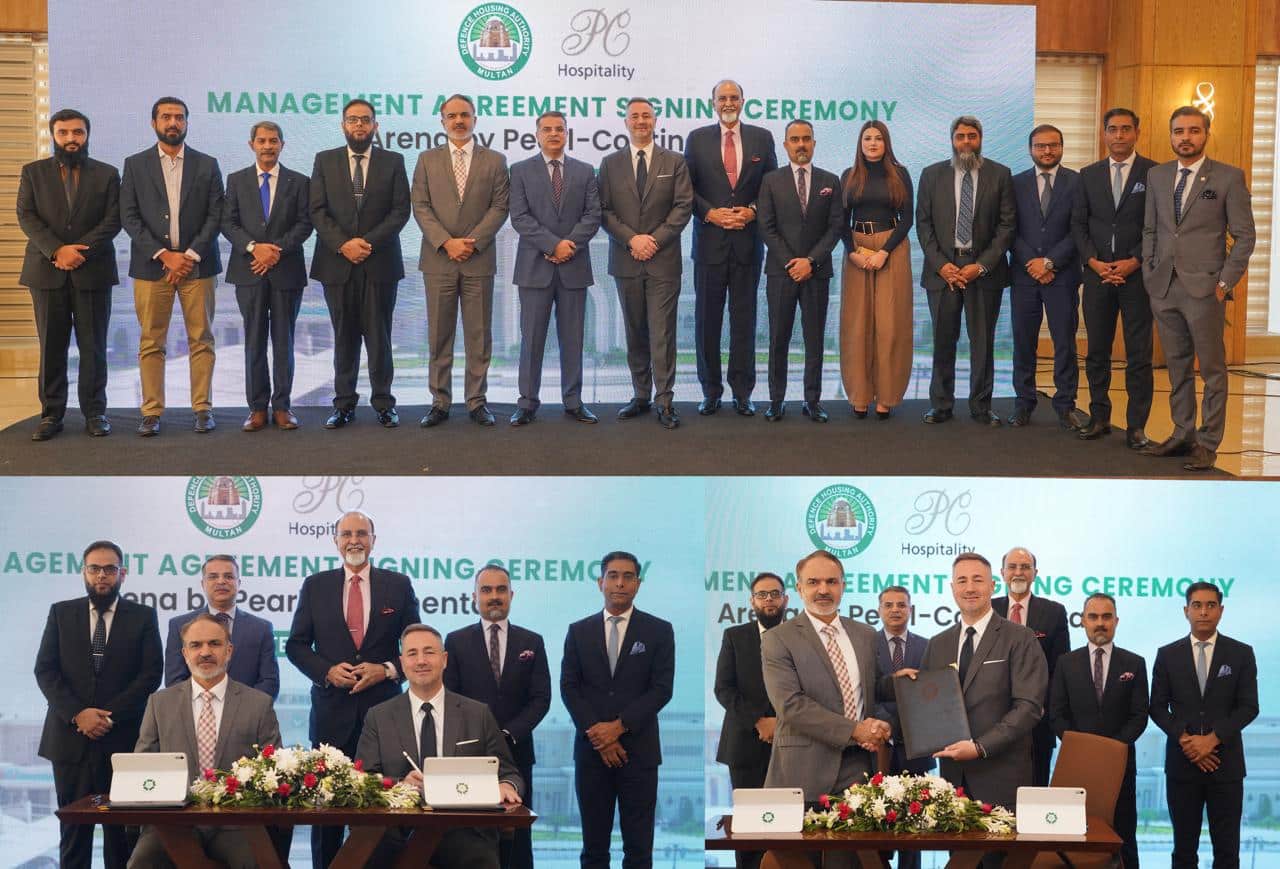 Pearl-Continental (PC), the hospitality division of Hashoo Group, has entered into a management agreement with DHA Multan to manage and operate Arena DHA Multan, the city’s premier event and hospitality complex. The signing ceremony took place at Rumanza by Pearl-Continental Hotel, Multan, attended by senior leadership of PC Hospitality, Hashoo Group, DHA Multan management, and distinguished personalities of the city.