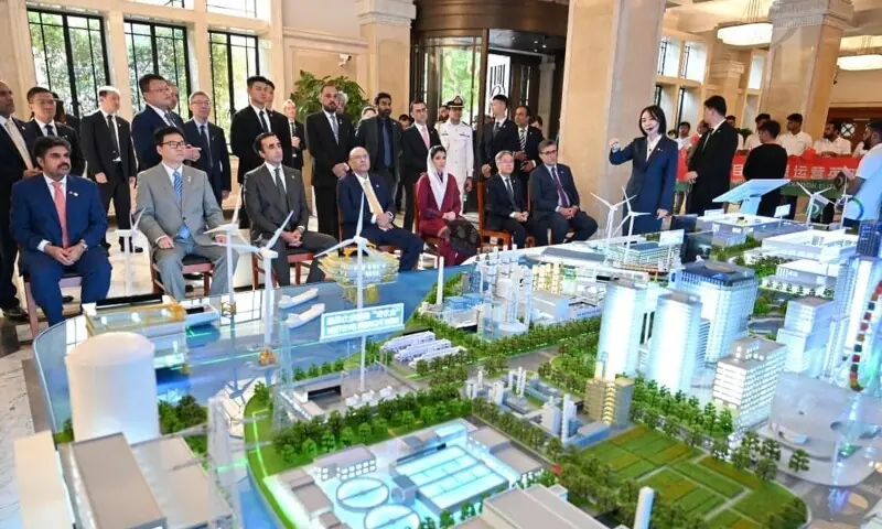 The president was accompanied by First Lady Bibi Aseefa Bhutto-Zardari, PPP Chairman Bilawal Bhutto-Zardari, Senator Saleem Mandviwalla, Sindh Senior Minister Sharjeel Memon, Sindh Planning and Energy Minister Syed Nasir Shah, China’s Ambassador to Pakistan Jiang Zaidong and Pakistan’s Ambassador to China Khalil Hashmi.