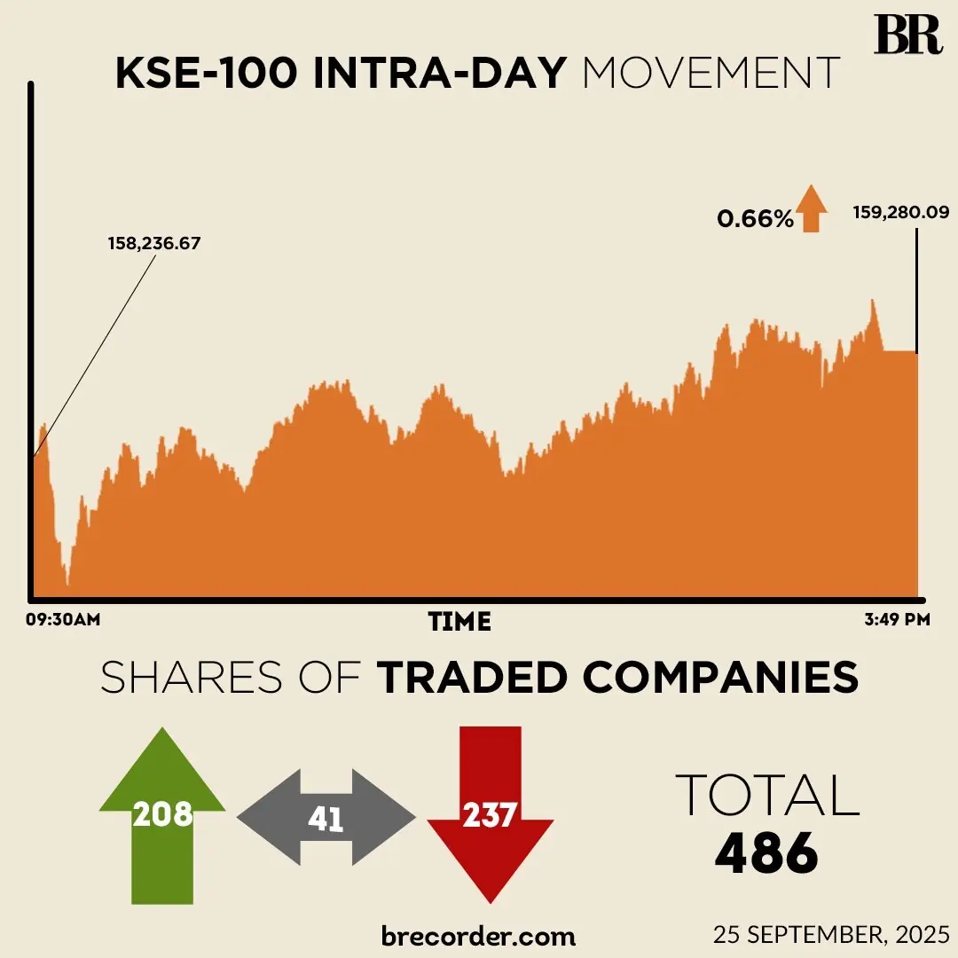 Positive sentiments prevailed throughout the trading session, pushing the KSE-100 to hit an intra-day high of 159,537.60.
