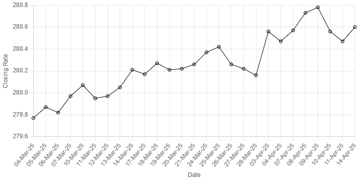 “25-Mar-25”, “26-Mar-25”, “27-Mar-25”, “28-Mar-25”, “03-Apr-25”, “04-Apr-25”, “07-Apr-25”, “08-Apr-25”, “09-Apr-25”, “10-Apr-25”, “11-Apr-25”, “14-Apr-25”