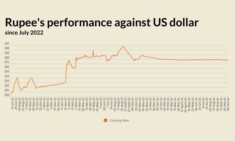 On Tuesday, the rupee had settled at 277.67, according to the State Bank of Pakistan (SBP).