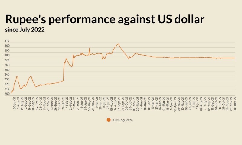 On Monday, the rupee had settled at 277.98, according to the State Bank of Pakistan (SBP).