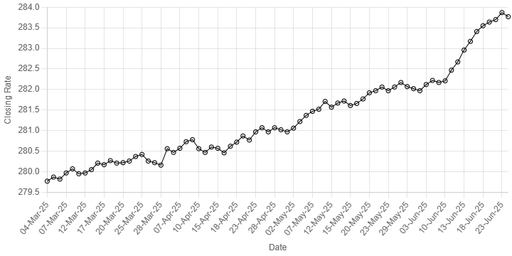 “25-Mar-25”, “26-Mar-25”, “27-Mar-25”, “28-Mar-25”, “03-Apr-25”, “04-Apr-25”, “07-Apr-25”, “08-Apr-25”, “09-Apr-25”, “10-Apr-25”, “11-Apr-25”, “14-Apr-25”, “15-Apr-25”, “16-Apr-25”, “17-Apr-25”, “18-Apr-25”, “21-Apr-25”, “22-Apr-25”, “23-Apr-25”, “24-Apr-25”, “25-Apr-25”, “28-Apr-25”, “29-Apr-25”, “30-Apr-25”, “02-May-25”, “05-May-25”, “06-May-25”, “07-May-25”, “08-May-25”, “09-May-25”, “12-May-25”, “13-May-25”, “14-May-25”, “15-May-25”, “16-May-25”, “19-May-25”, “20-May-25”, “21-May-25”, “22-May-25”, “23-May-25”, “26-May-25”, “27-May-25”, “29-May-25”, “30-May-25”, “02-Jun-25”, “03-Jun-25”, “04-Jun-25”, “05-Jun-25”, “10-Jun-25”, “11-Jun-25”, “12-Jun-25”, “13-Jun-25”, “16-Jun-25”, “17-Jun-25”, “18-Jun-25”, “19-Jun-25”, “20-Jun-25”, “23-Jun-25”, “24-Jun-25”,