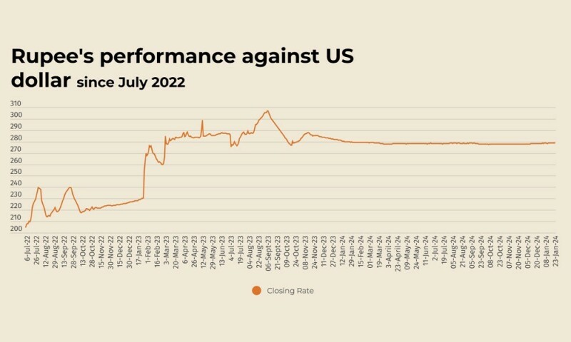 According to the State Bank of Pakistan (SBP), the rupee closed at 278.85 on Wednesday.