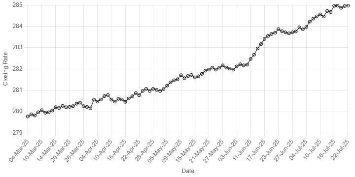“25-Mar-25”, “26-Mar-25”, “27-Mar-25”, “28-Mar-25”, “03-Apr-25”, “04-Apr-25”, “07-Apr-25”, “08-Apr-25”, “09-Apr-25”, “10-Apr-25”, “11-Apr-25”, “14-Apr-25”, “15-Apr-25”, “16-Apr-25”, “17-Apr-25”, “18-Apr-25”, “21-Apr-25”, “22-Apr-25”, “23-Apr-25”, “24-Apr-25”, “25-Apr-25”, “28-Apr-25”, “29-Apr-25”, “30-Apr-25”, “02-May-25”, “05-May-25”, “06-May-25”, “07-May-25”, “08-May-25”, “09-May-25”, “12-May-25”, “13-May-25”, “14-May-25”, “15-May-25”, “16-May-25”, “19-May-25”, “20-May-25”, “21-May-25”, “22-May-25”, “23-May-25”, “26-May-25”, “27-May-25”, “29-May-25”, “30-May-25”, “02-Jun-25”, “03-Jun-25”, “04-Jun-25”, “05-Jun-25”, “10-Jun-25”, “11-Jun-25”, “12-Jun-25”, “13-Jun-25”, “16-Jun-25”, “17-Jun-25”, “18-Jun-25”, “19-Jun-25”, “20-Jun-25”, “23-Jun-25”, “24-Jun-25”, “25-Jun-25”, “26-Jun-25”, “27-Jun-25”, “30-Jun-25”, “02-Jul-25”, “03-Jul-25”, “04-Jul-25”, “07-Jul-25”, “08-Jul-25”, “09-Jul-25”, “10-Jul-25”, “11-Jul-25”, “14-Jul-25”, “15-Jul-25”, “16-Jul-25”, “17-Jul-25”, “18-Jul-25”, “21-Jul-25”, “22-Jul-25”
