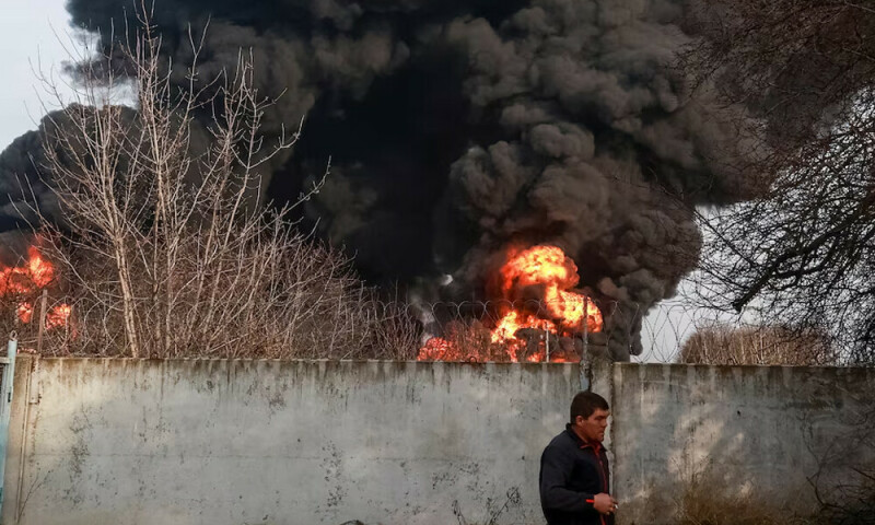 The attack also struck an infrastructure facility and caused a fire, he added in a statement on the Telegram messaging app.