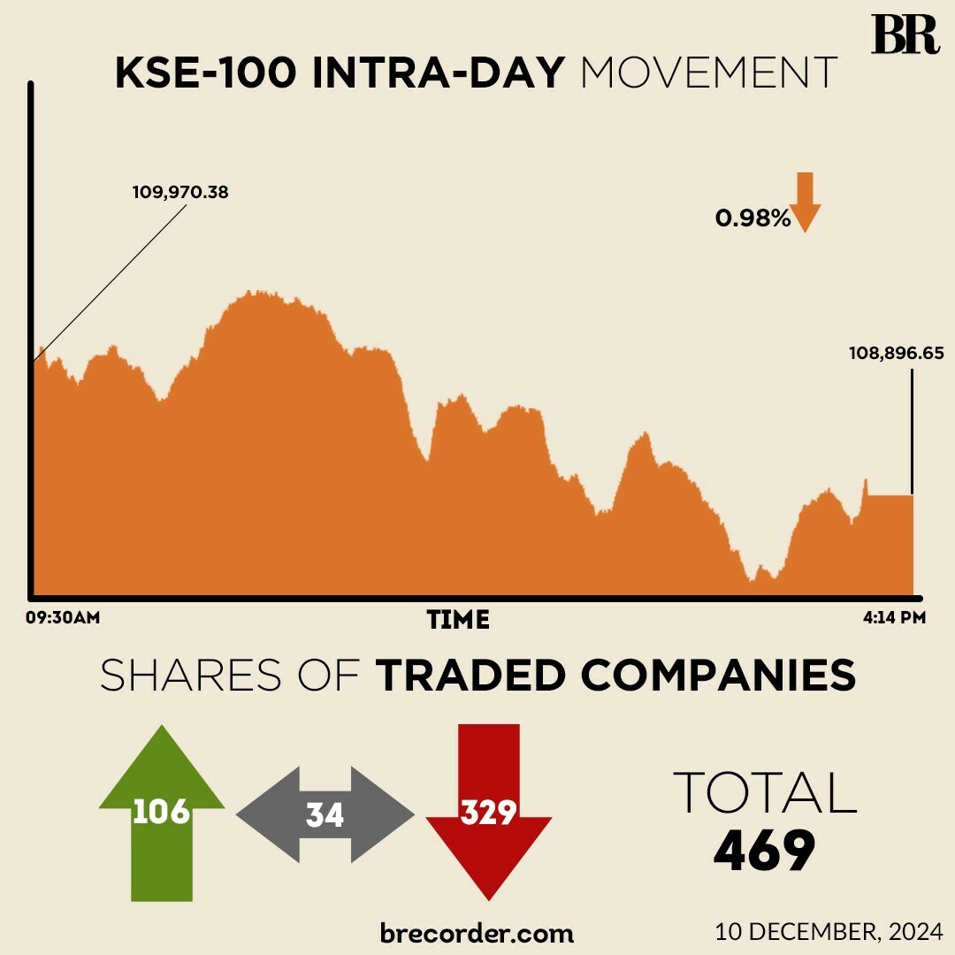 At close, the benchmark index settled at 108,896.65 for an overall decrease of 1,073.73 points or 0.98%.