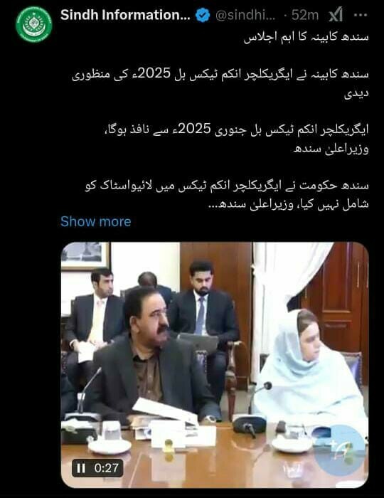 In a major development on the taxation front, the Sindh cabinet on Monday approved the Agricultural Income Tax Bill 2025.