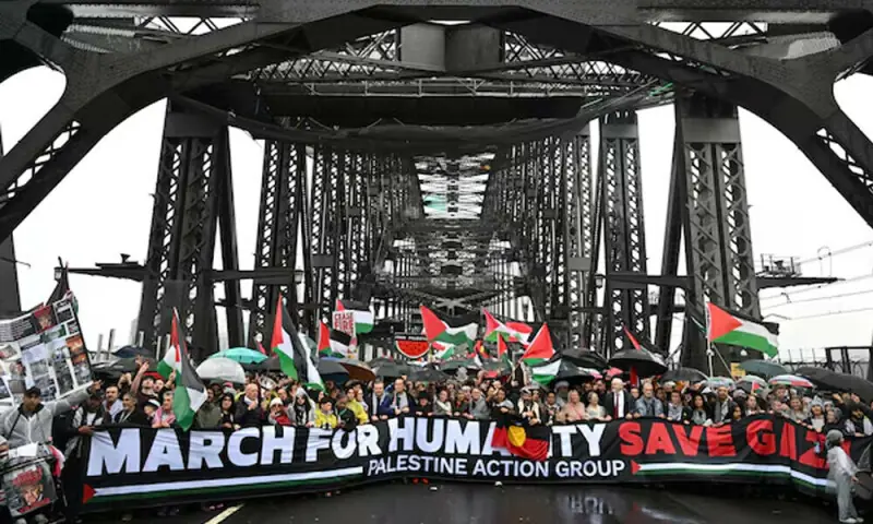 SYDNEY: Tens of thousands of people joined a pro-Palestinian rally in the business district of Australia’s most populous city, Sydney, on Sunday, organisers said, after a court this week blocked a move to hold the protest at the Sydney Opera House.