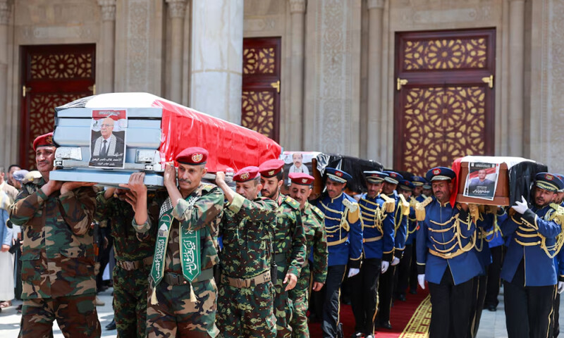 Thousands of mourners attended a funeral at the largest mosque in Yemen’s capital Sanaa on Monday for 12 senior Houthi figures, including their prime minister, who were killed by an Israeli strike.