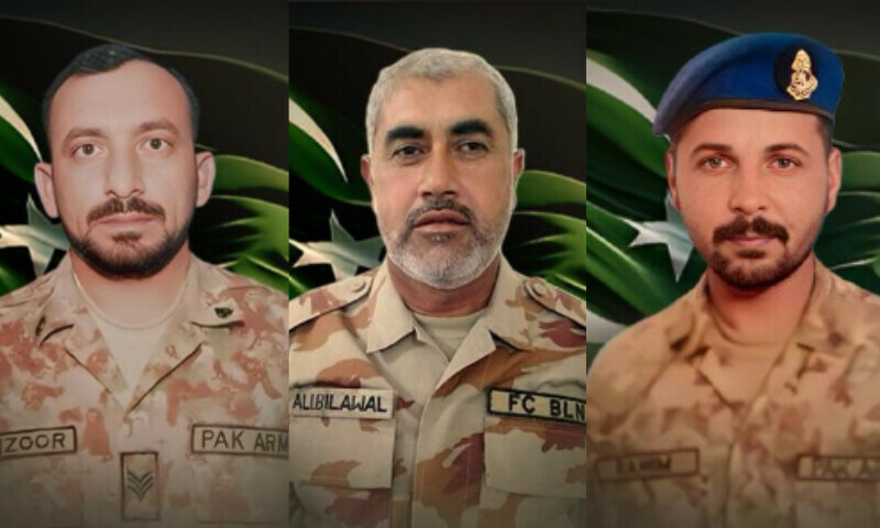 The martyred soldiers were identified as Nawabshah district’s Havildar Manzoor Ali, Naseer Abad district’s Havildar Ali Bilawal and Badin district’s Naik Abdul Raheem.
