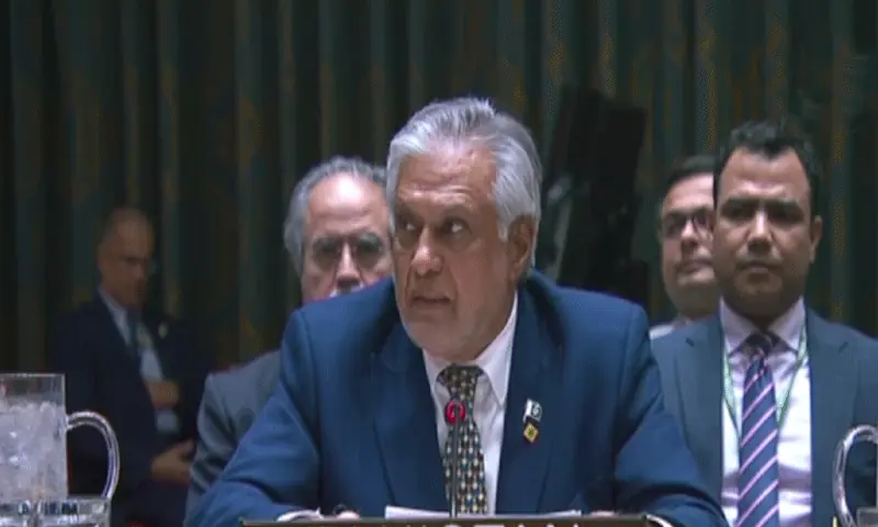 Addressing a UNSC session on the Middle East, FM Dar said: “Gaza has become a graveyard for humanity and the global conscience. We call upon the Security Council and the broader international community to act decisively, to uphold human dignity, to ensure accountability and deliver justice.