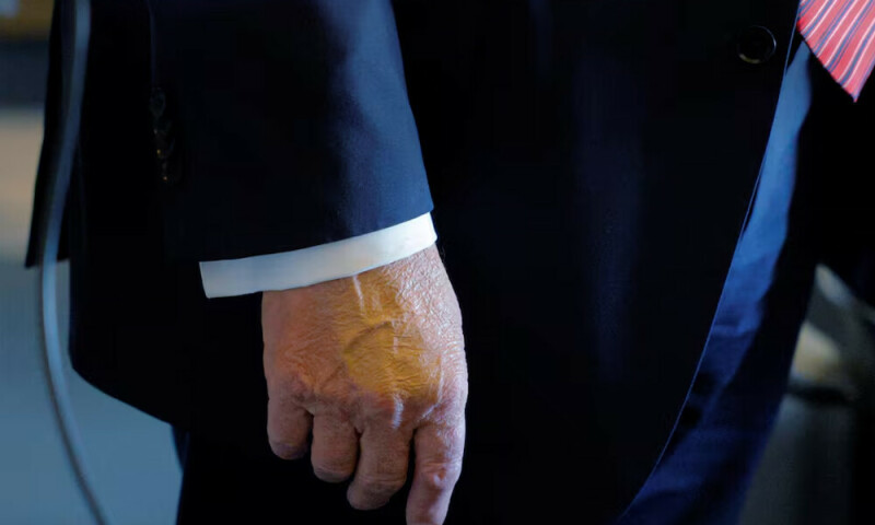 WASHINGTON: The White House said on Thursday that U.S. President Donald Trump is experiencing swelling in his lower legs and bruising on his right hand, after photographs emerged of Trump with swollen ankles and makeup covering the afflicted part of his hand.