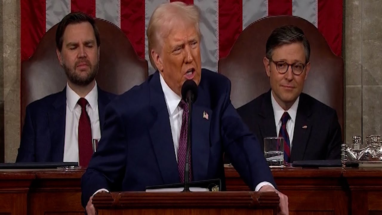 Trump takes victory lap in speech to Congress, Democrats protest